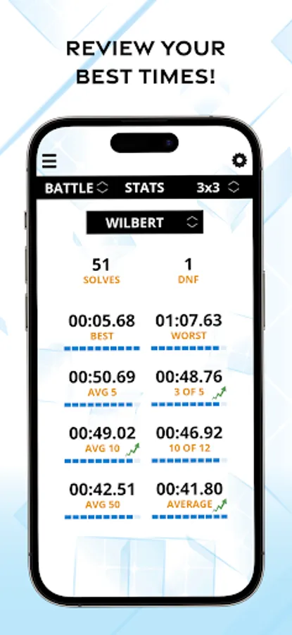 ◆ See average times, 3 out of 5, 10 out of 12, last 50 and more statistics.
