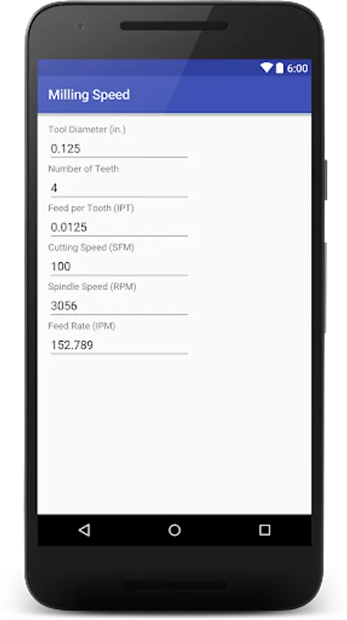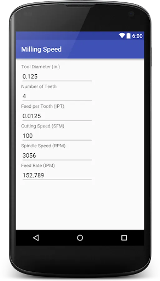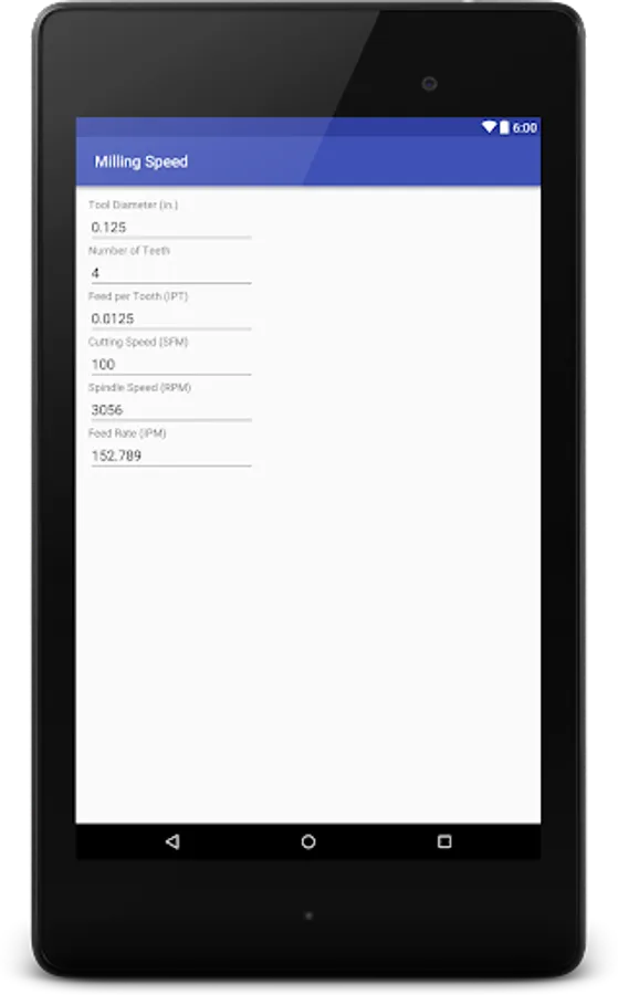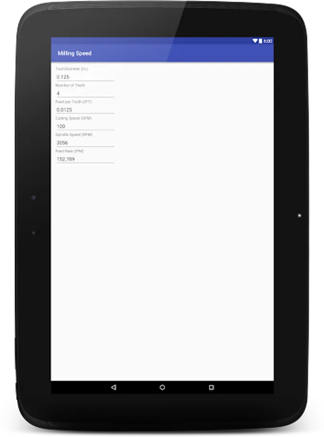 Milling Speed Calculator Screenshots