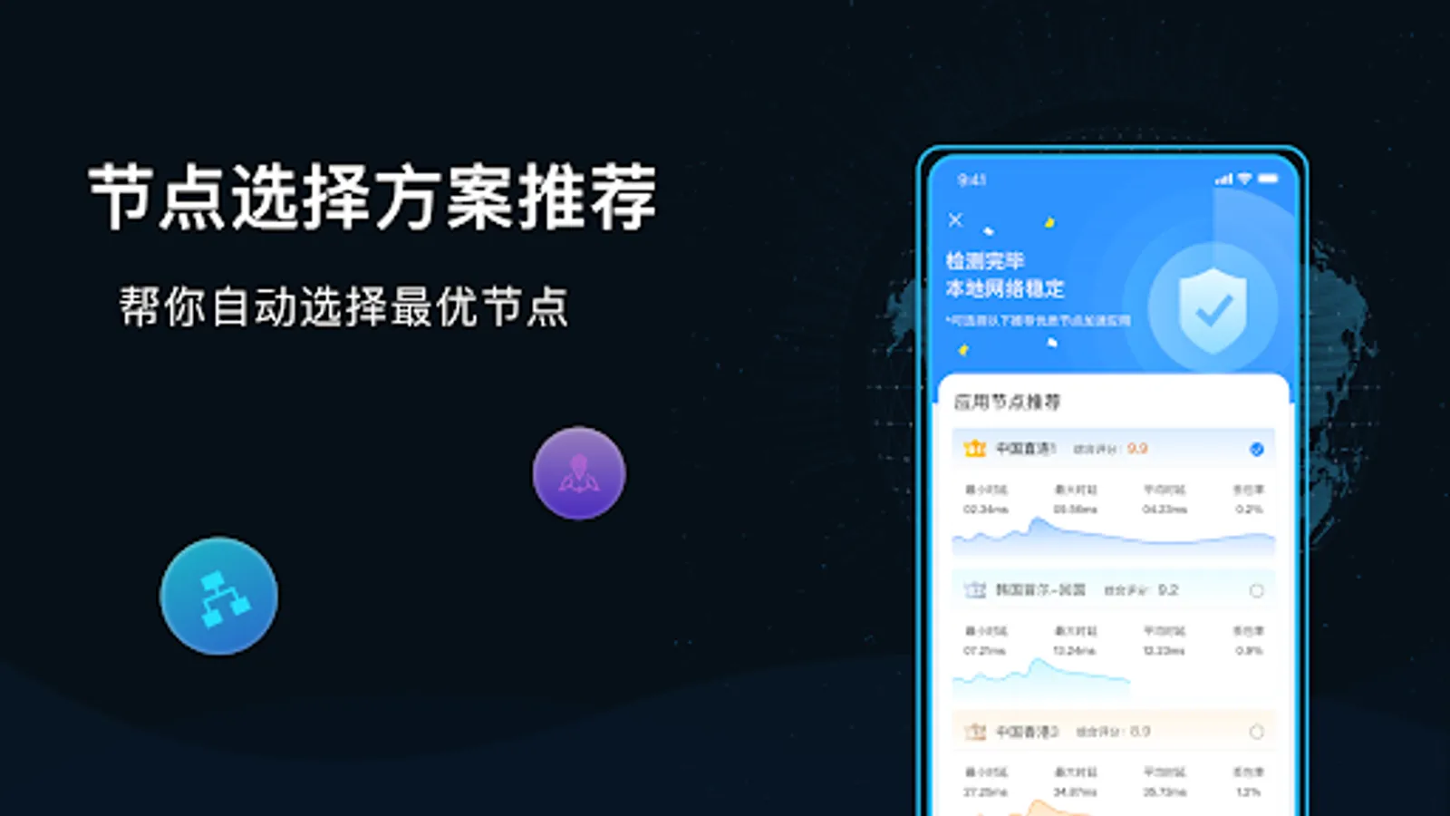 It provides a lot of proxy lines, you can either manually select a proxy line, or let it automatically select a high-bandwidth, low-latency service node for you.