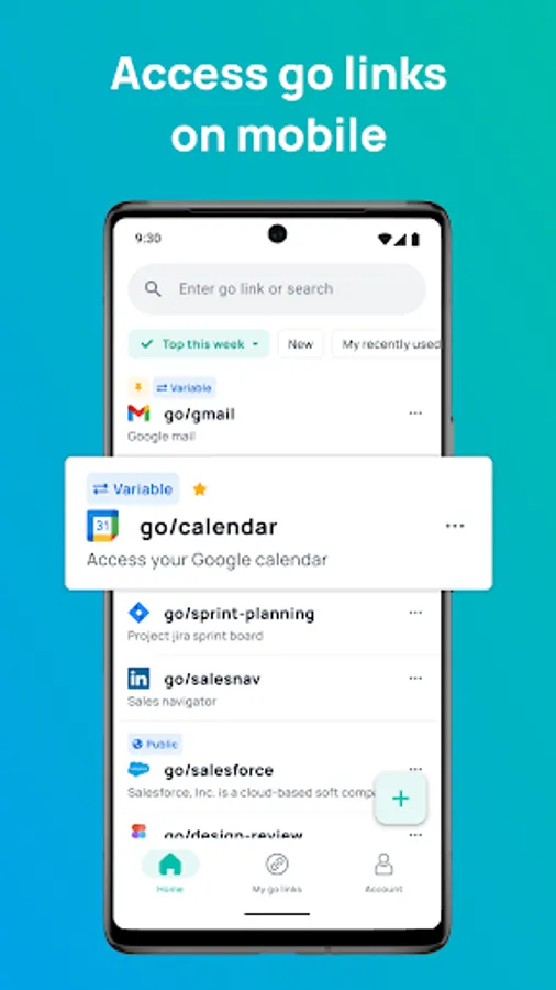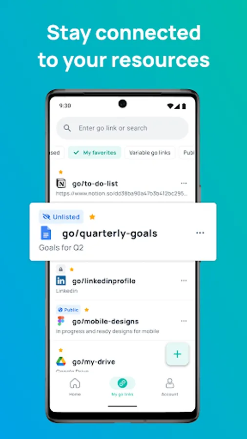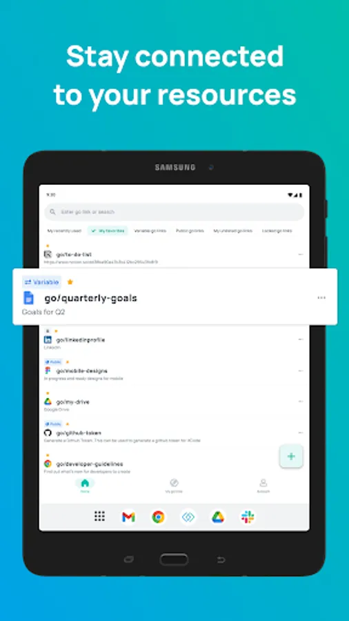 GoLinks® improves productivity by helping teams find and share information fast with memorable short links called go links. The same intuitive, secure go links that you use and love on your desktop are now easily accessible on your mobile device.