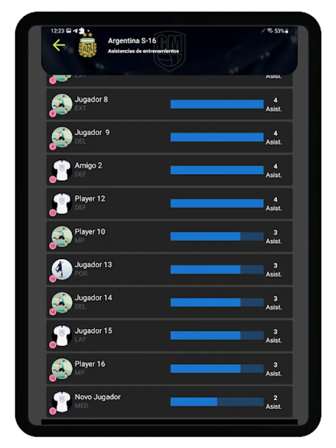 ▶ ️ In matches you will add the statistics of each player (You go from the player's file to each individual match in the line-ups), being able to edit, delete each data.