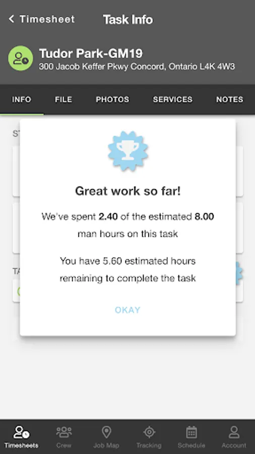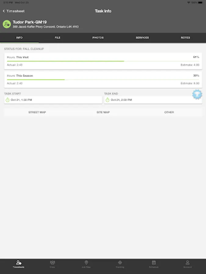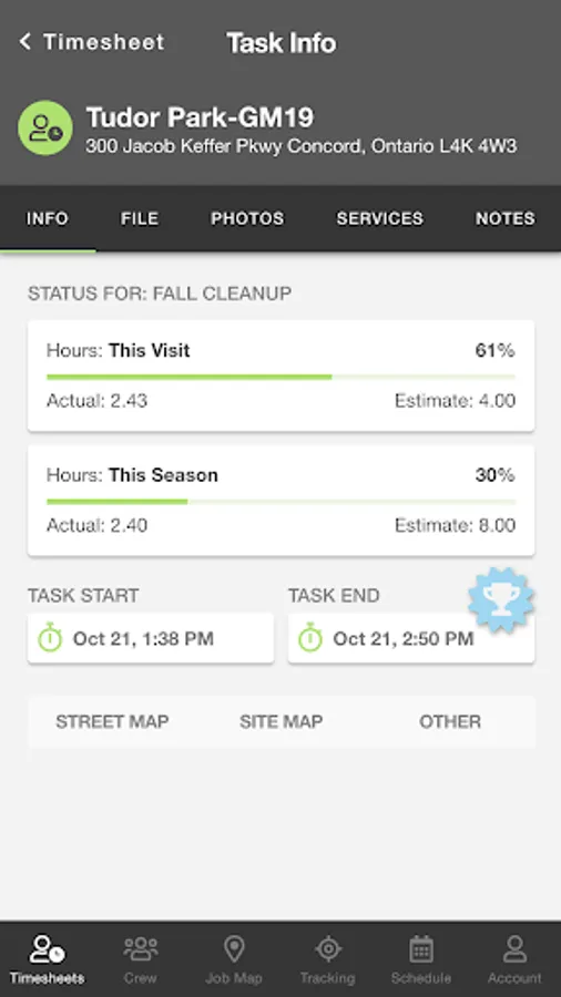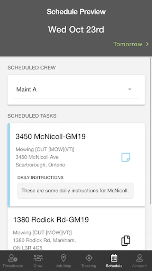 * Supports 1-click links to street and jobsite maps
