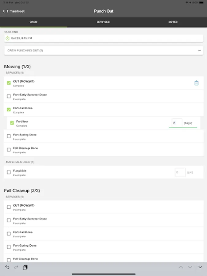 * Material and billable activity tracking