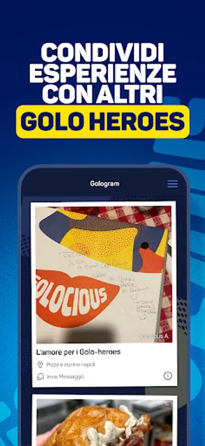 What if we told you that with our App you can also socialize with other Golo-Heroes? Yes, you got it right, through the GOLOGRAM section in fact, not only will you be able to publish your most Golocious posts, but you can also chat with other users. The most social food community in Italy is here!