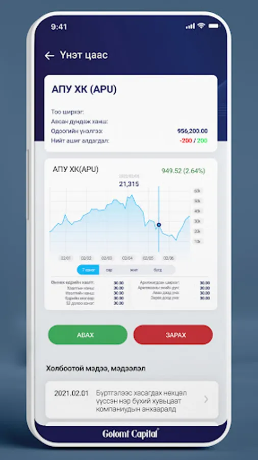 By using this application, you can participate in the trading of stock companies on the Mongolian Stock Exchange directly online or through Golomt Capital.