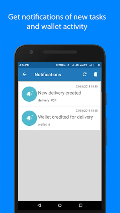 - Get Notifications whenever nearby delivery is created so that you can accept it