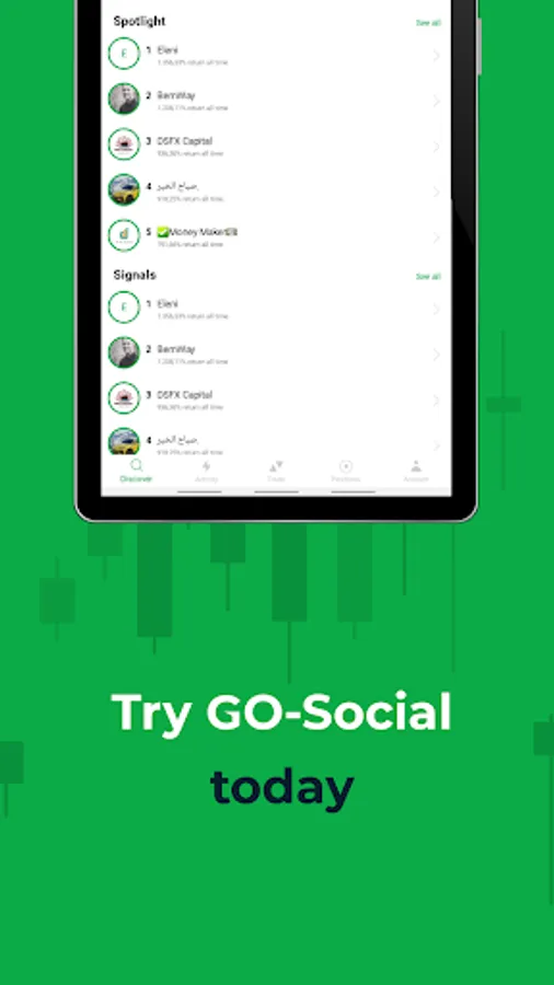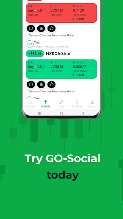 GO Markets Social is an easy to operate trading app, designed to let you trade like your favourite investor. Benefit from more experienced traders simply by replicating their trades, without the need to think about when to enter and when to exit.