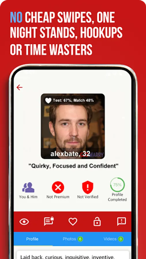 A Practical Alternative to Dating Apps. Not About Cheap Swipes, One Night Stands or Hookups. This app is for people who want Commitment & Long-term Relationships. i.e. Marriage & Family.