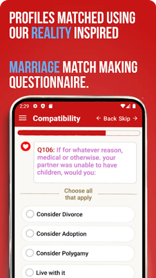 Our reality based Marriage Match Making Questionnaire based algorithm matches you with people beyond just looks. People who are a perfect match with you. Deeper than just looks and pickup lines.