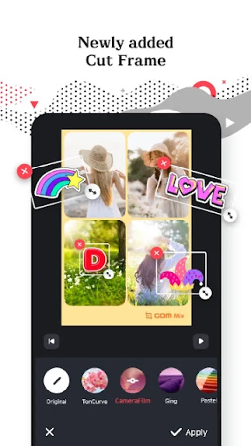 Cut Frame Video feature is newly added to make your own videos just with camera shots and simple editing!