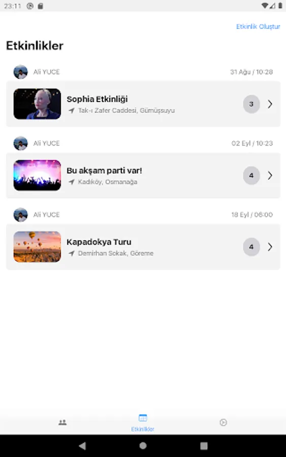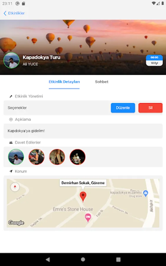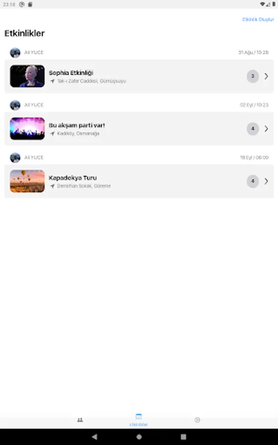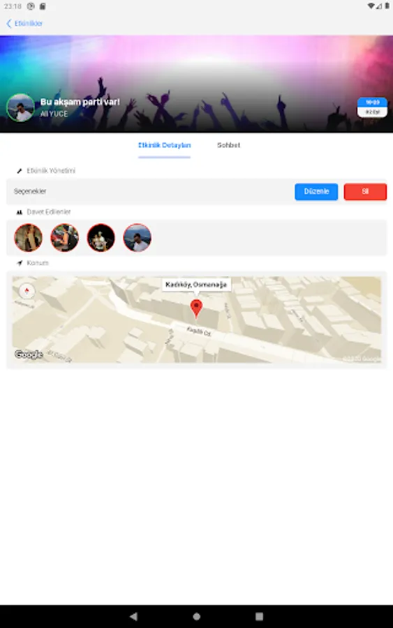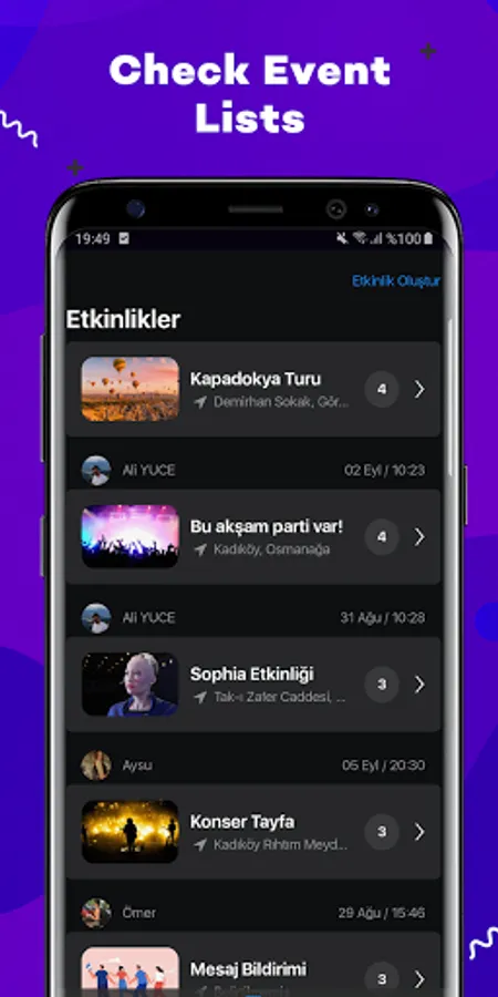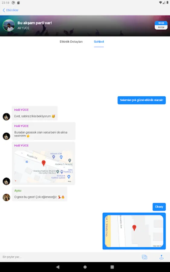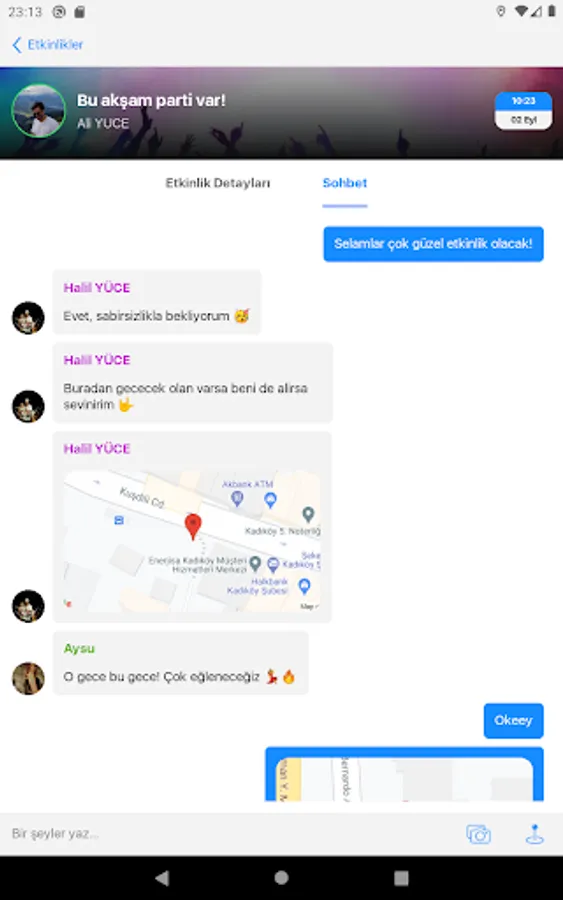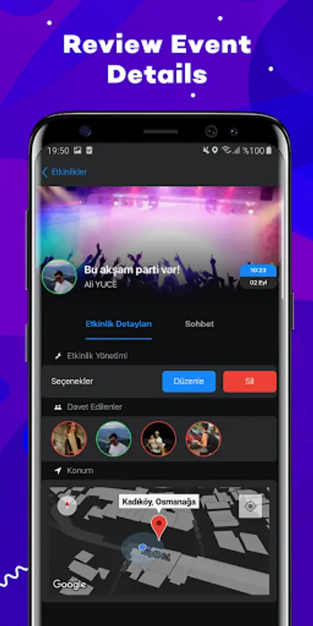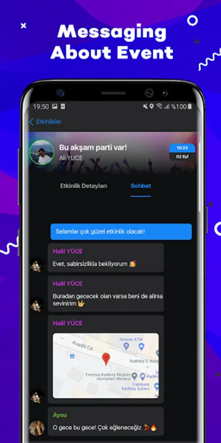 Thanks to it's a handy and easy interface, you can learn about your friends who want to go out and make plans with them. Moreover, you can make your plan from within the application. All you have to do is create an event plan from the event section and invite your friends to the event. Many features such as live location sharing will also be included in the application soon.