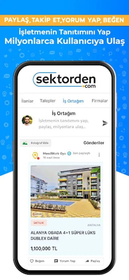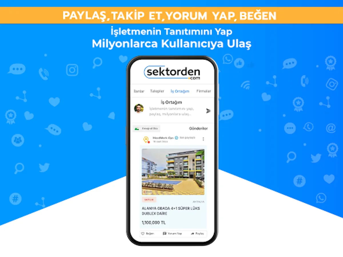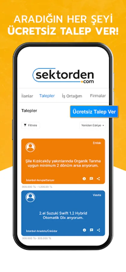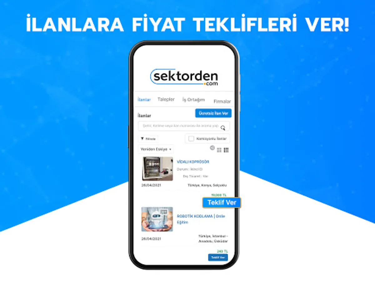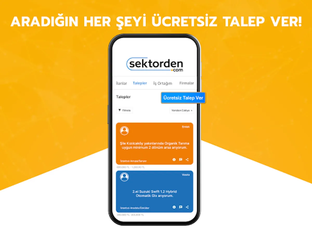 Thanks to sektorden.com, you can instantly view thousands of postings, reach people in Turkey and abroad, and easily perform your buying and selling transactions.
