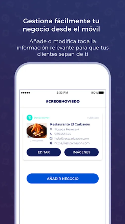 Thanks to the app you can publish all your news: upload your products or services, publish offers and raffles and report the latest news or events of your business.