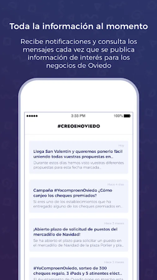 Receive notifications and check messages every time information of interest to Oviedo businesses is published.