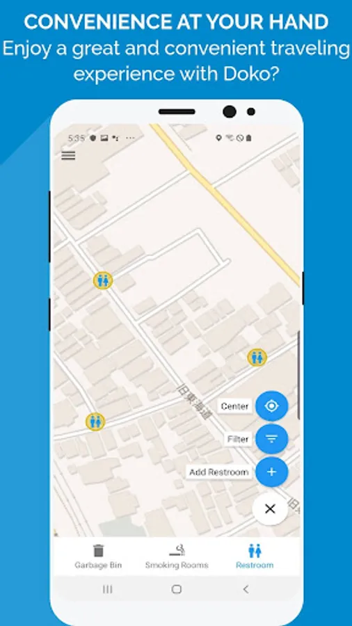Doko? will find the closest garbage bin, smoking area or restroom with just a few taps.