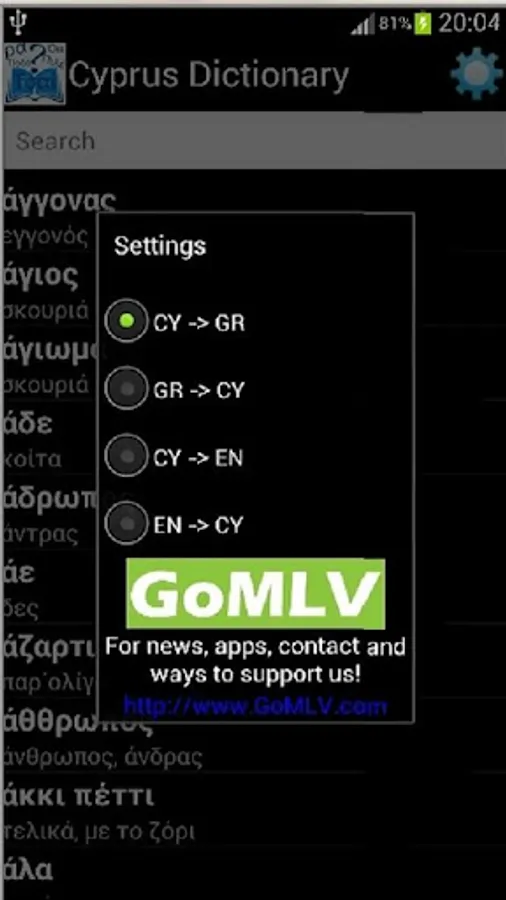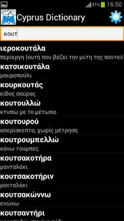 A 100% FREE modern Cyprus dictionary with over 2000 Greek Cypriot words. Search fast for any word you don't understand! Available for Android devices. Offers translation:
