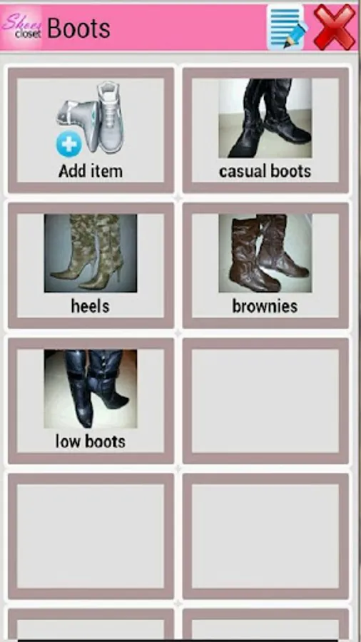 Shoes Closet is The Best app to help you keep track of your shoes collection! Create categories and put them in!