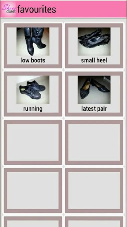 • Create categories, anything you want, like sports, work, high heels, flats, slippers etc