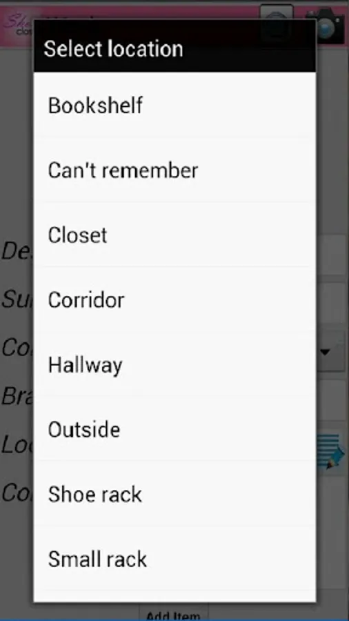 • Each item can have its own photo and details ,like brand, color, a description and comments (e.g. was it a gift or not, price etc)
