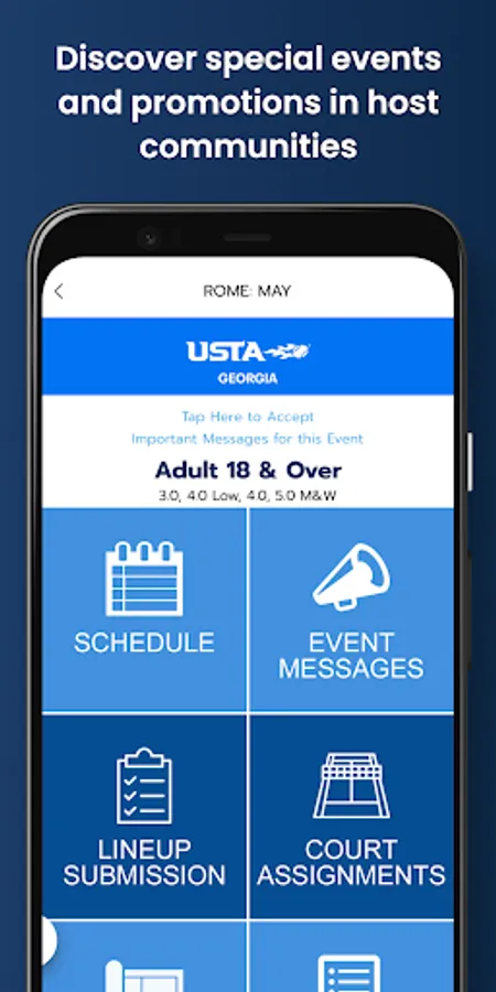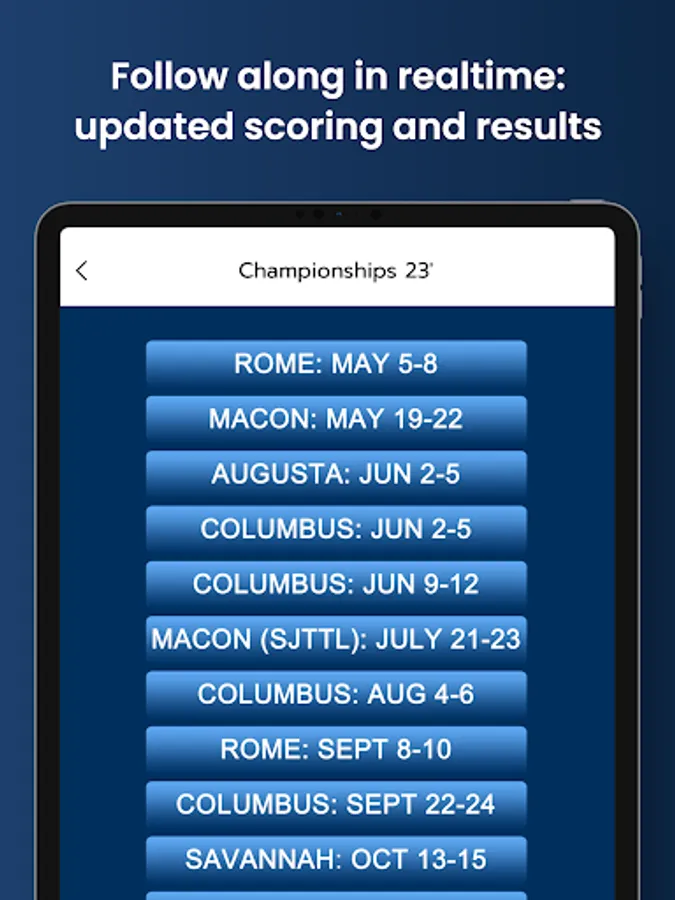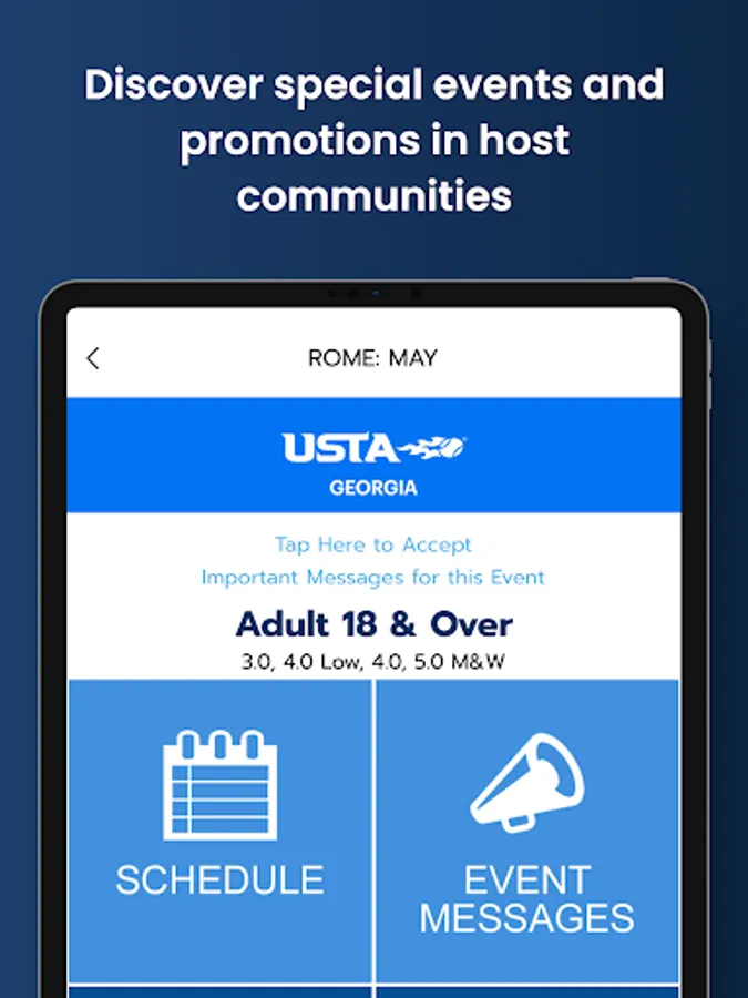 USTA Georgia’s Adult League State Championships App delivers tournament essentials, updated scoring results and GPS directions to play venues as well as other important local locations.