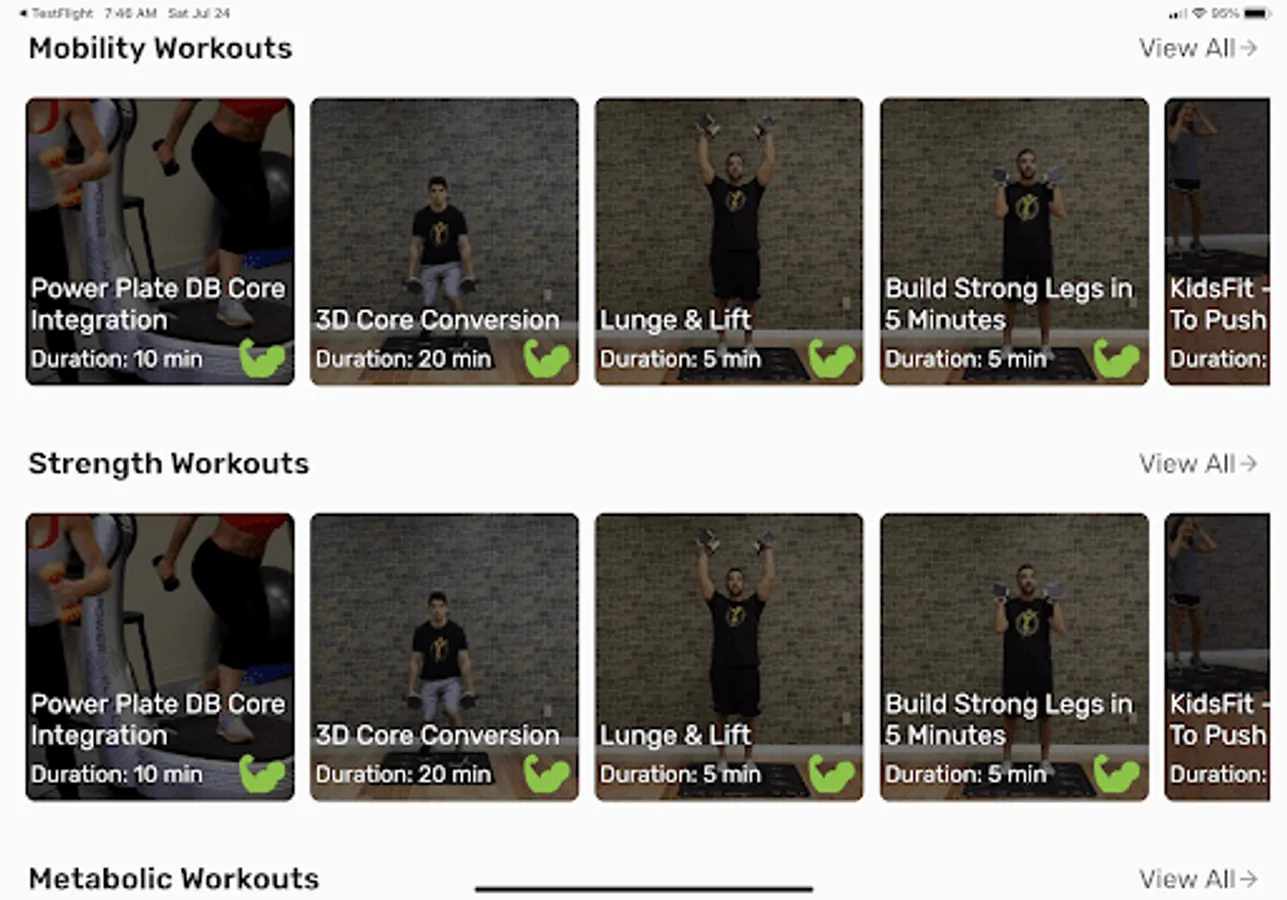 We believe all activity is good if it dosed at the right amounts, at the right time, for the goal. The HomeFit app utilizes their exclusive movement meter to not only motivate you to move more, but guides you on how much mobility, strength, metabolic and power training you need within a week.