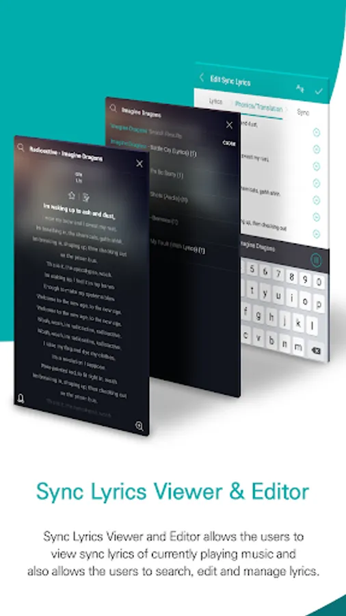 ● Sync Lyrics Viewer allows the users to view or search sync lyrics of the currently playing music.