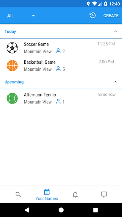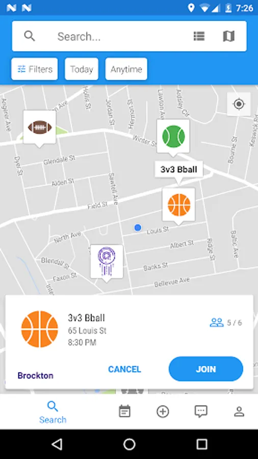 Now you don't have to show up to an empty court or field! Easily organize the game you want by location and time, and it will be available to those around you with similar interests to join and participate.