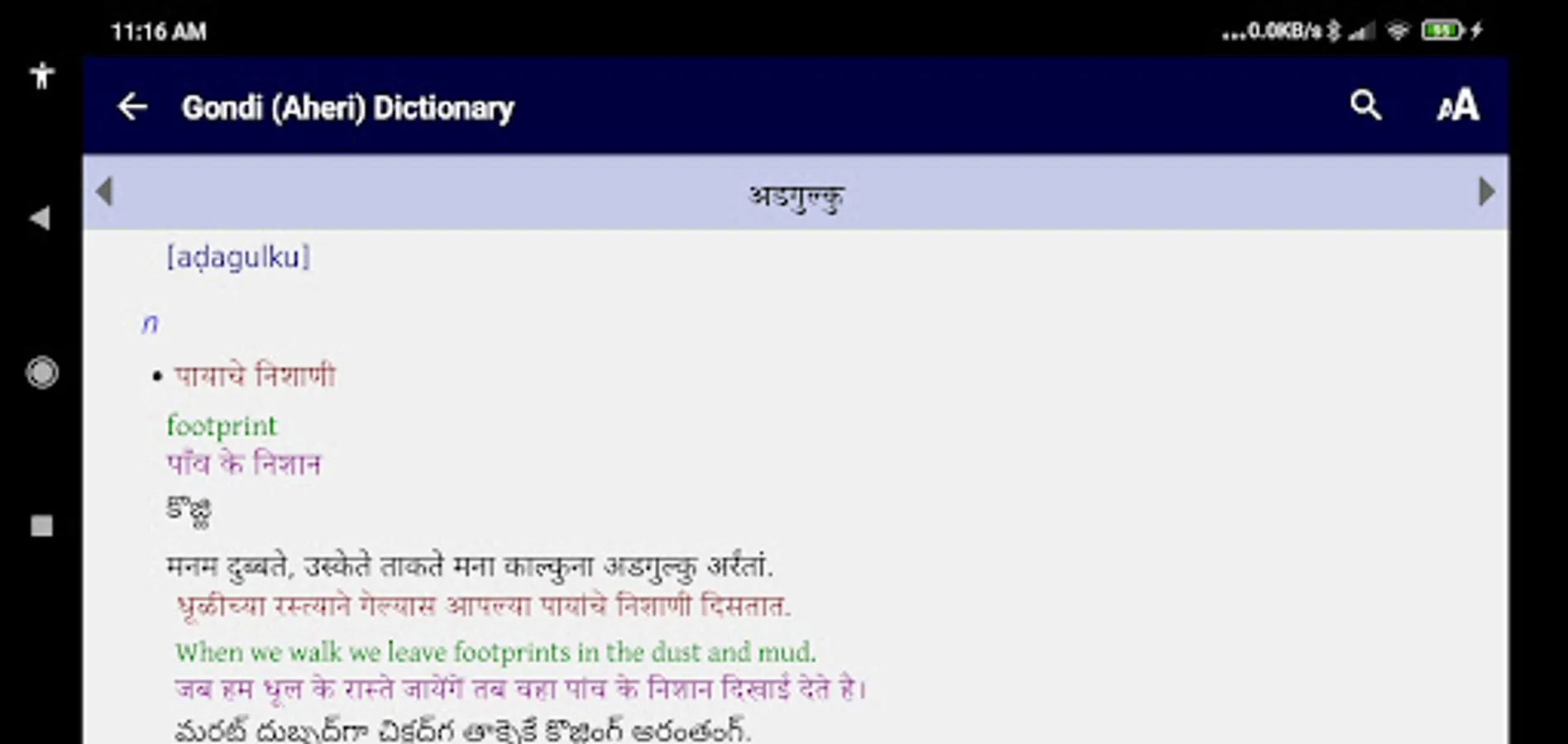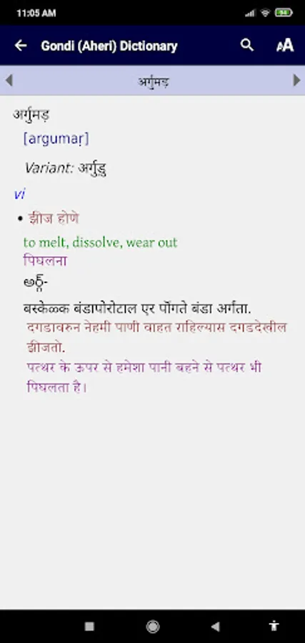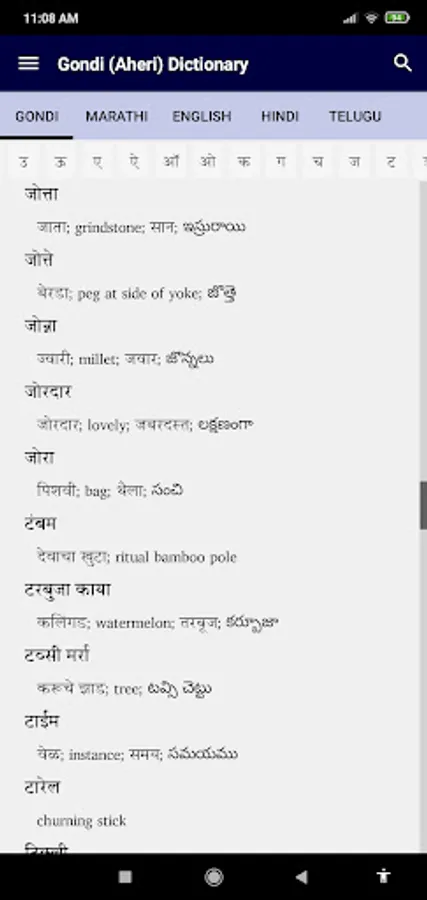 It is a dictionary BY the people and FOR the people. It is not yet perfect, and should be considered as a community-approved draft with work still in progress. The maintainers of this Gondi Dictionary welcome feedback - which can be immediately incorporated into subsequent electronic editions. Our hope and dream is that this App will be very useful to the Gonds of Central India - as they seek to preserve and develop their unique language and culture.