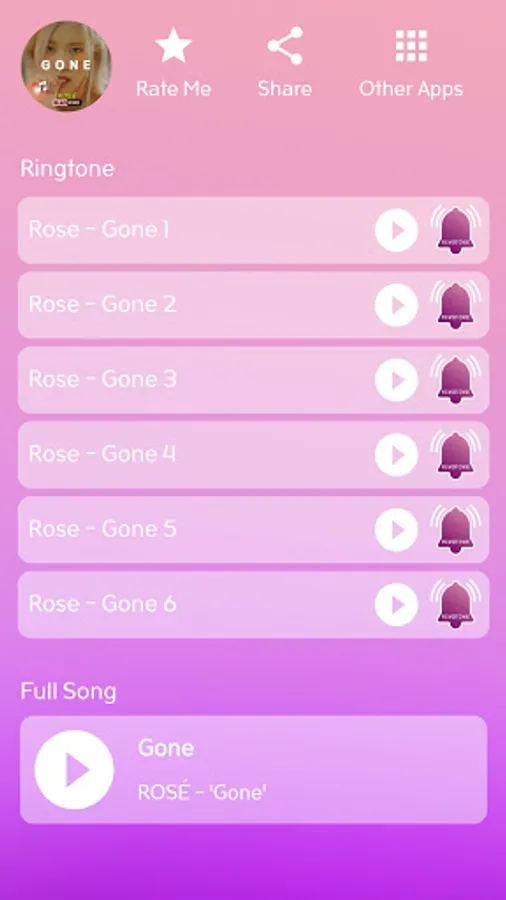 Anyways, the "goNE" - RoSE "Blackpink" song under Ringtones Free for Fans is on your phone. And you can listen Full song of ROse - GoNe.