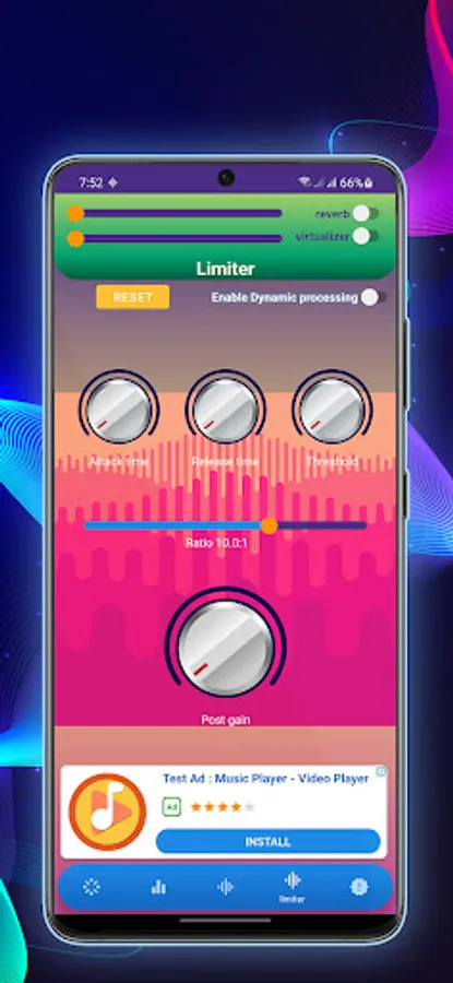 B - Equalizer serves to provide the desired audio effects such as bass booster, reverb, volume booster, power amplifier, and even to change the input output sound gain of music to be stronger. Make your handset or earphone feels pro. This will make Bluetooth audio sound quality much better than before.