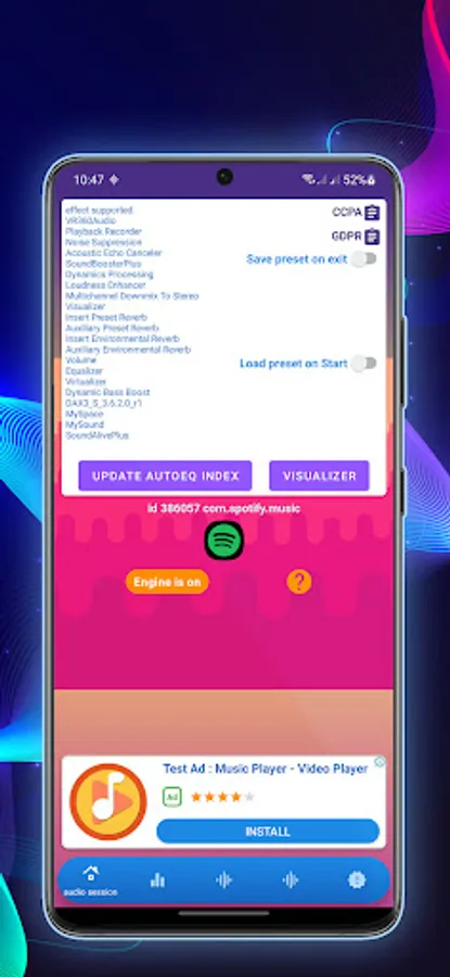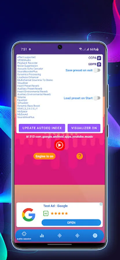 B - Equalizer was tested and working with Youtube music app + Spotify music app.