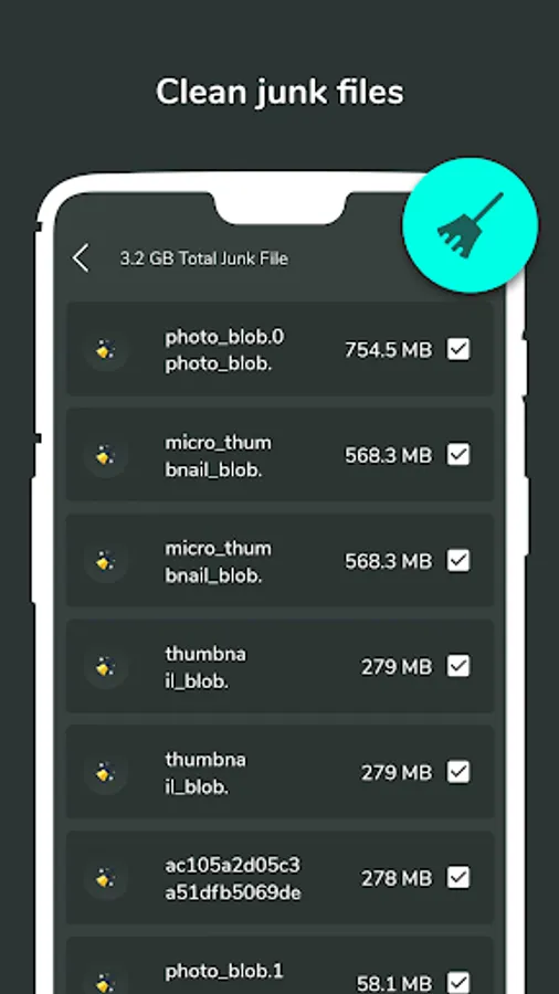 Junk Cleaner : you can directly delete cache, junk and unwanted files and folders from your mobile through Junk Cleaner. Just click on Junk Cleaner to scan of all such cache and junk available in your mobile and to delete it to create space in your mobile gallery.