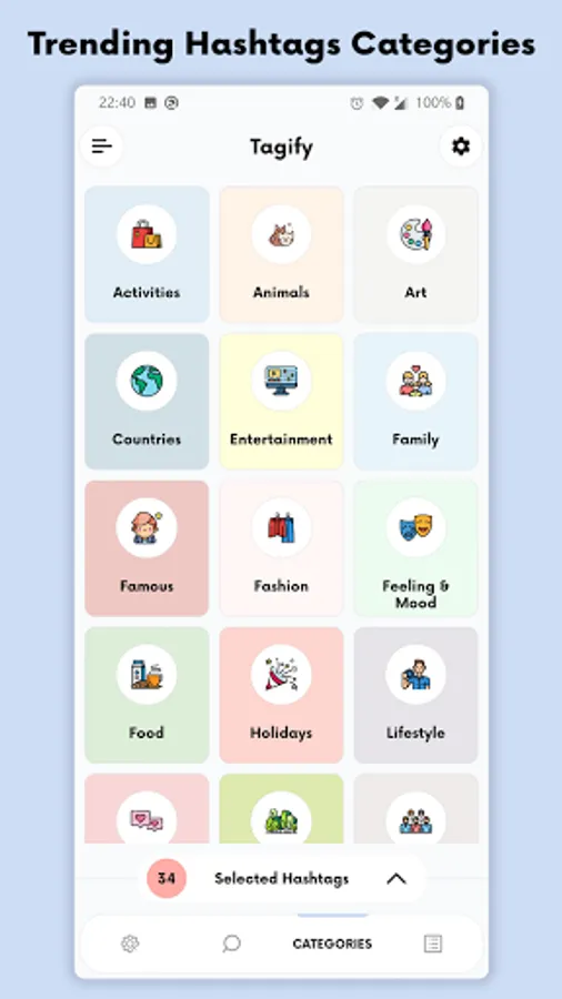 + This app provides predefined hashtags/tags for different categories. Such as: