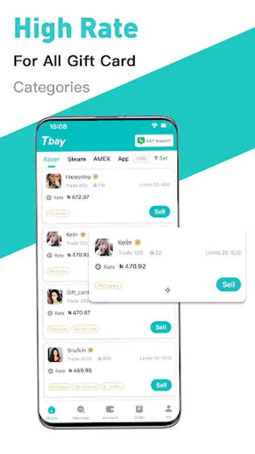 The buyers on Tbay accept iTunes, Amazon, Steam Wallet, Google Play, Apple Store, eBay, Walmart, Sephora, Nordstrom, Target, JCPenney, Best Buy, Nike, Hotels.com, Macy's,, Xbox, Vanilla, G2A, American Express (AMEX), , Foot Locker, Visa, Play Station, etc. Just download and open Tbay app to get updated every minute!