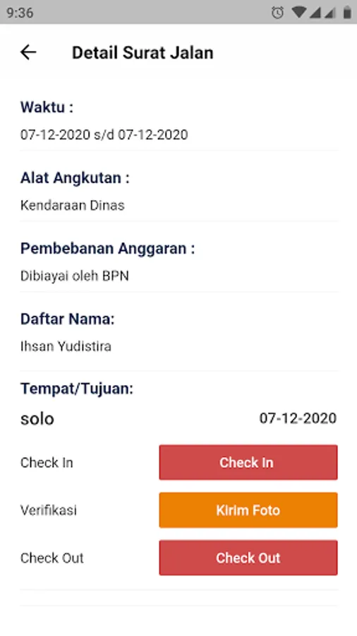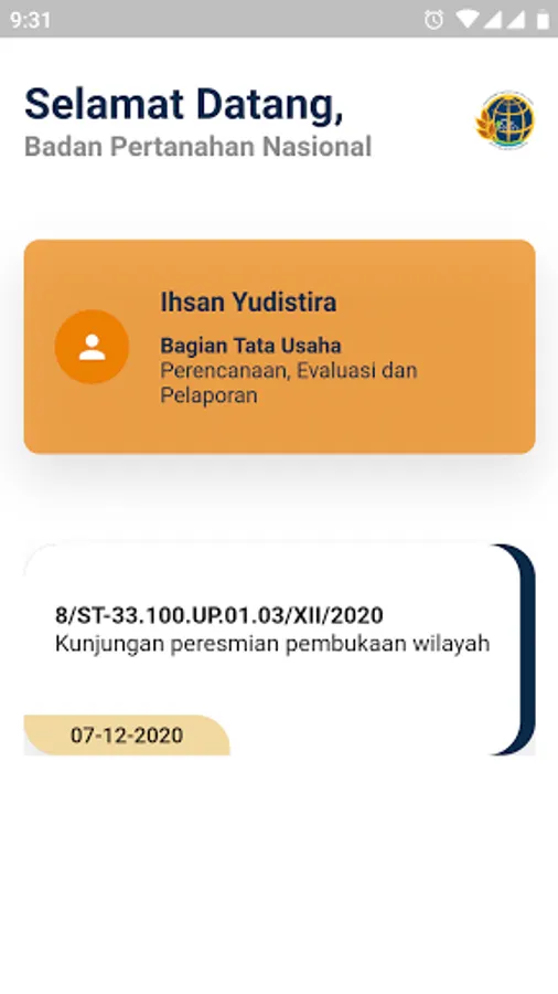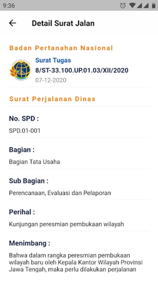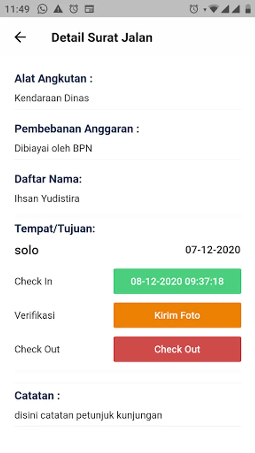 This application is used for internal purposes of the ATR BPN office of the Central Java Regional Office for scheduling official visits and taking evidence of visits with selfies at the locations of official visits. The visit data will be recorded online and can be used to verify the location of the visit with a photo and location. Equipped with a letter of assignment and official travel documents and a report on the results of the visit.