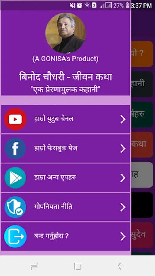 This is the essence of his autobiography "Binod Chaudhary". We really appreciate her for her hard work and patience. He is the king of Nepali business and this is our small attempt to present his life story through this small app.