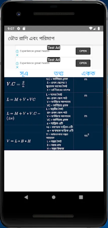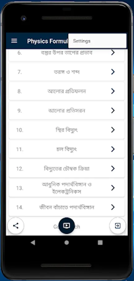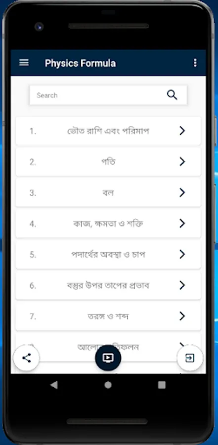 ssc physics formula app content is full of all kinds of physics formula lesson by lesson in bangla language.Podartho biggan sutro ssc and class nine ten.