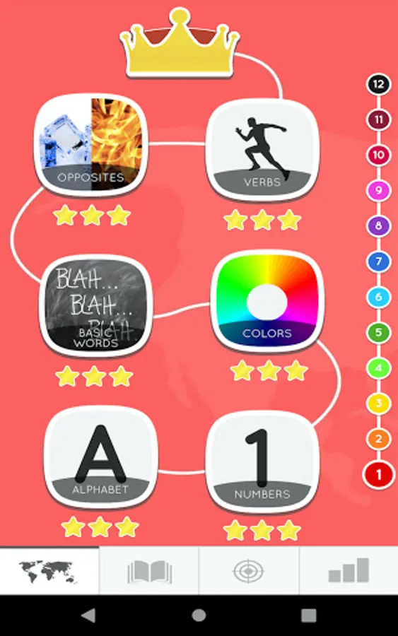 Basic: Alphabet letters , Numbers , Colors , Verbs , Food β¦