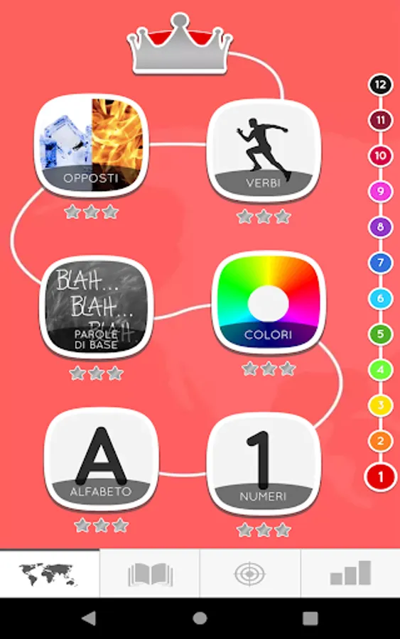 Basic: Alphabet letters , Numbers , Colors , Verbs , Food …