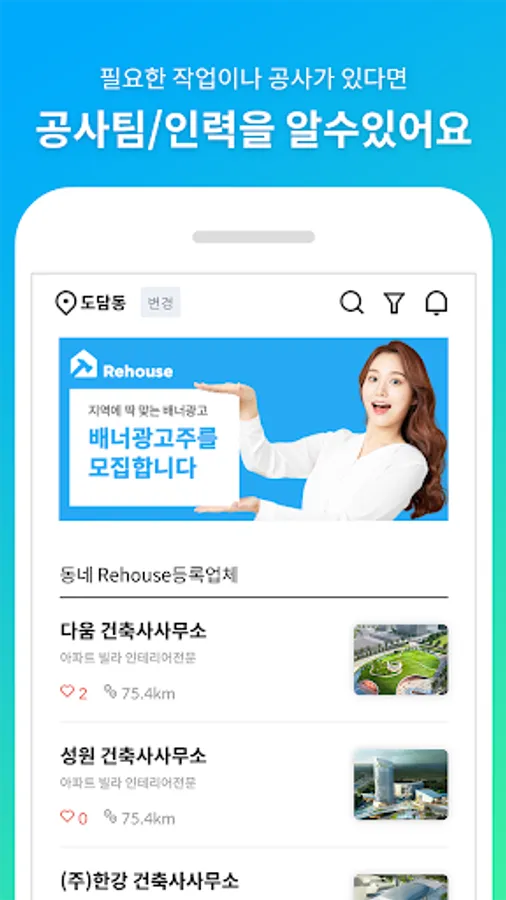 • 고객이 필요로 하는 시공타입에 맞는 업체들만 검색할 수 있는 편리함