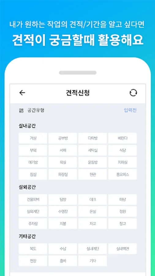 • 시공할 공간의 형태와 시공분류에 맞는 업체들에게 견적요청
