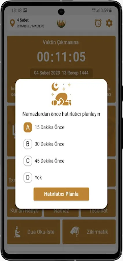 The application reminds you of prayer times and offers a feature where you can read the Quran aloud. The application reminds its users of the current prayer times and the prayers required for each prayer. It also allows you to optionally read the Quran aloud. This application is a useful tool for those who want to remind and perform their worship.