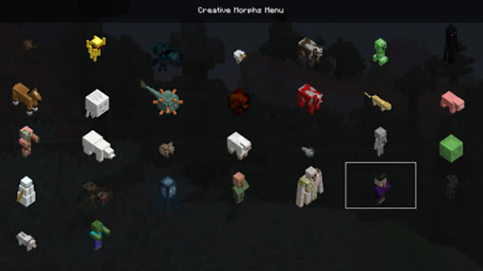 We can become whatever we want. On the off chance that we ended up a bat or a winged creature we will have small life, and we will be able to fly. To get to the menu where we are able alter our appearance to that of any other swarm, we must approach the swarm and press change. [Disclamer, this application is not affiliated in any way with Mojang AB. The creators of this application for MCPE are not anyhow associated with Mojang. This product fully complies with the rules set by Mojang at https://account.mojang.com/terms. All rights reserved.]