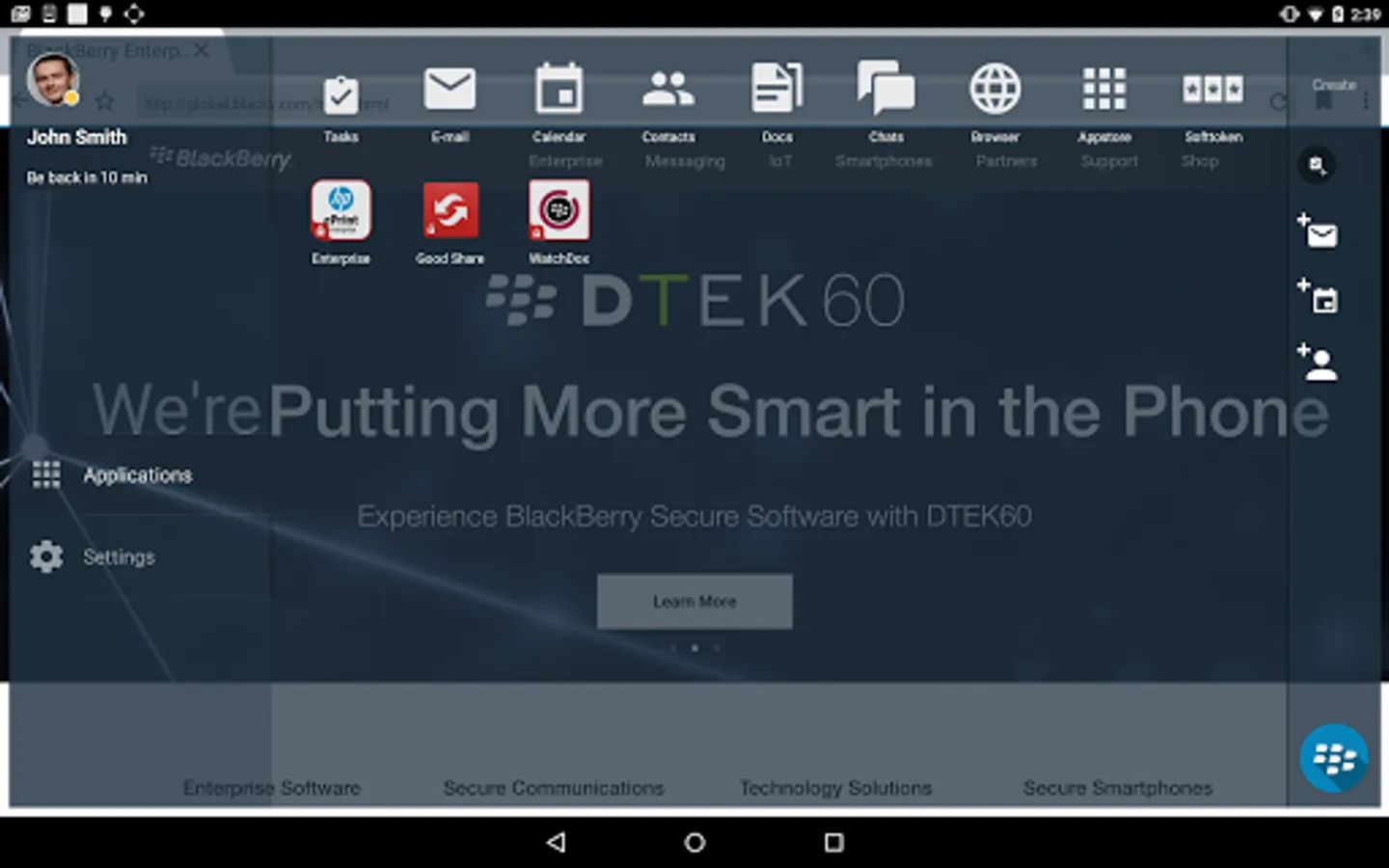 This app uses the BlackBerry Dynamics Secure Mobility Platform to safely segregate corporate data from personal data on Android devices, personally owned or corporate liable, without compromising user privacy. BlackBerry-secured apps protect business data on the device, over the air and when shared between apps. Learn more about BlackBerry Technology at www.blackberry.com