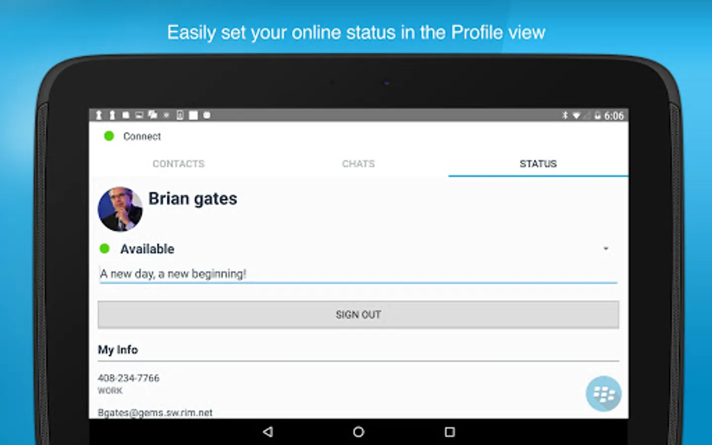 Note: BlackBerry Connect supports Android™ devices running Android OS 6.0 or later.