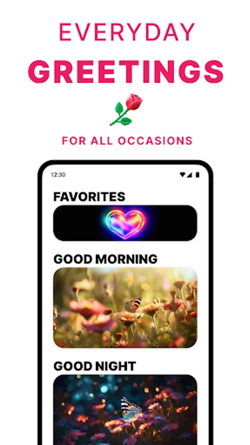 Everyday unique greeting cards and messages for a range of situations, such as good mornings, good nights, good afternoon, and special celebrations.