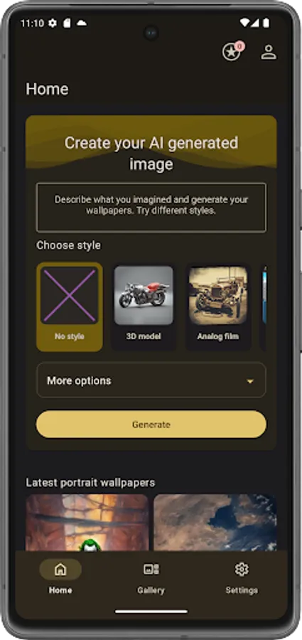 AI-generated Wallpapers: Utilize the power of AI to transform your text prompts into visually stunning wallpapers that reflect your unique style and imagination.