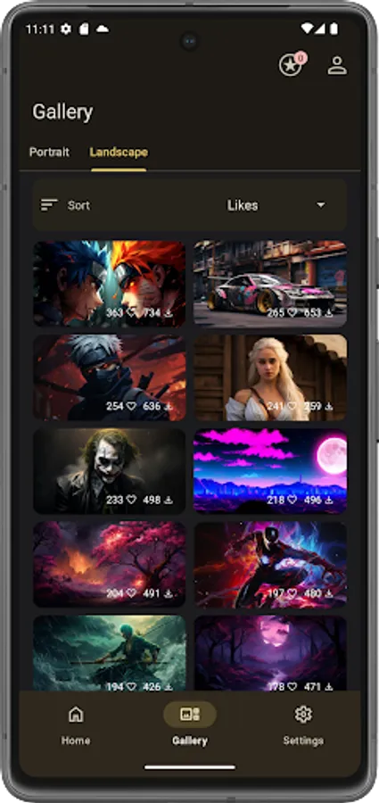 Explore the Gallery: Immerse yourself in a diverse collection of public wallpapers created by the AI Wallpapers community. Be inspired by their creations or showcase your own.