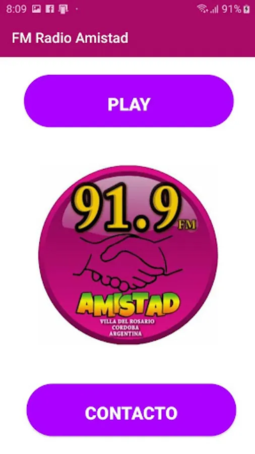 Fm Amistad 91.9 radio app from the town of Villa del Rosario, Córdoba.