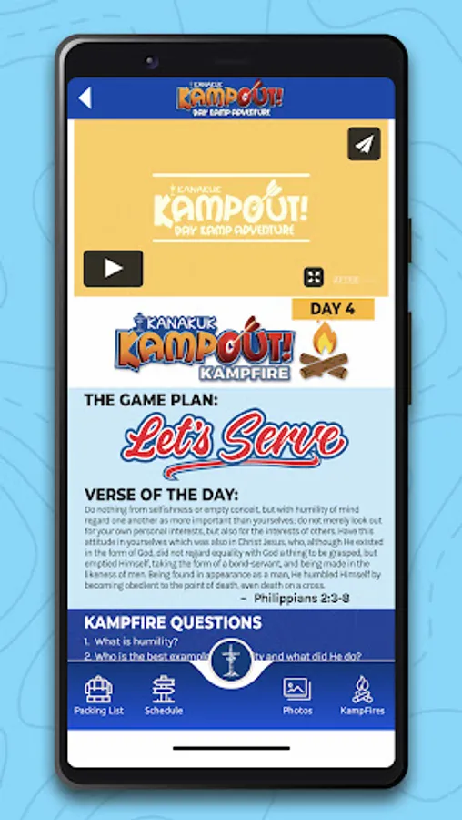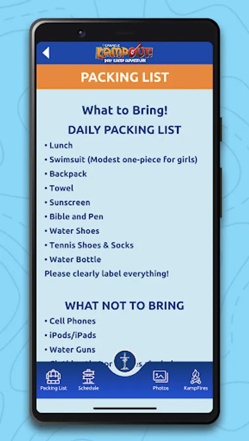 The official KampOut! app is packed with all the information you need to get your Kamper ready for the best week ever! Easily see where we will be this summer and register right in the app. Find out more about the Kanakuk staff, view schedules and packing lists, and even view daily Kampfires that give you a look into what your child is learning while they embark on their Kanakuk day Kamp adventure. You can also view daily photos right in the app!